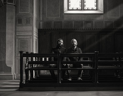 Riklins in der Kirche. Privatprojekt. Frank und Patrik Riklin vom Atelier für Sonderaufgaben in der Kirche St. Laurenzen St. Gallen. Fotografiert im März 2015 für die Vernissage Blaser & Baeggli.